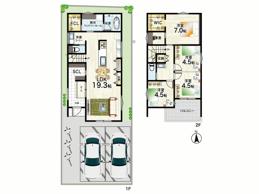 【1号地間取り】 画像の上でクリックすると拡大されます ![]() 【2号地パース図】