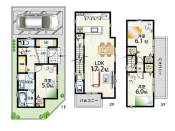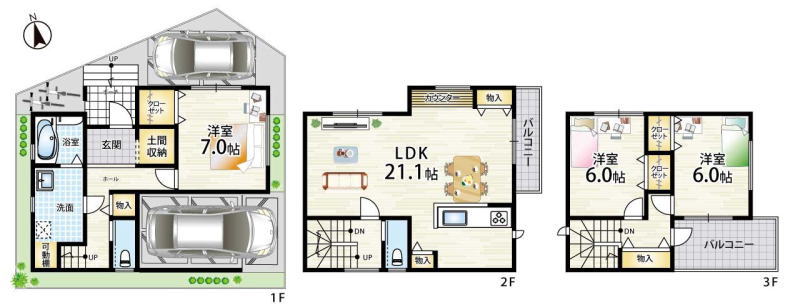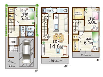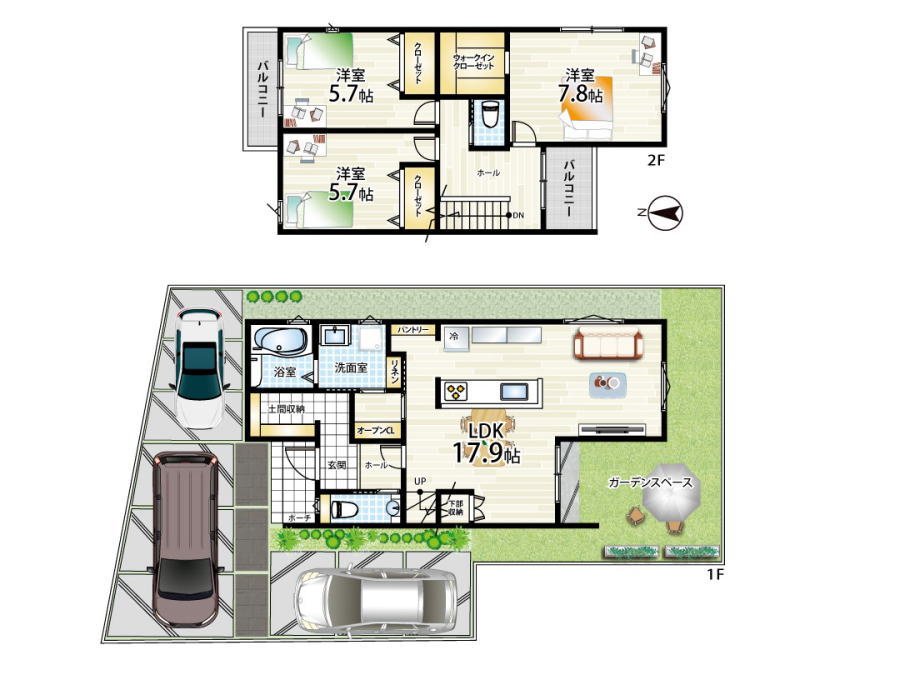 ![]() 【パース図】 【間取り】 画像の上でクリックすると拡大されます |