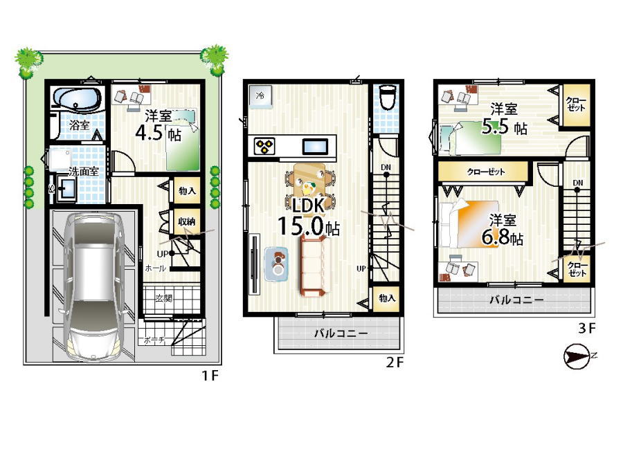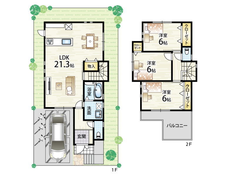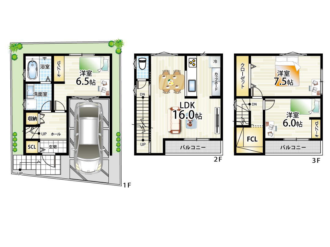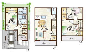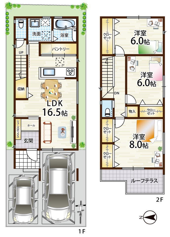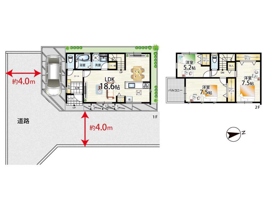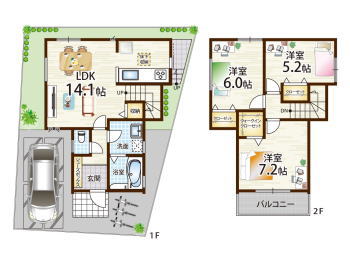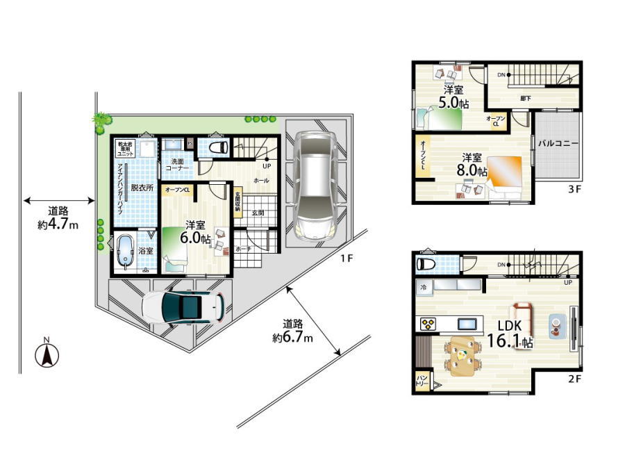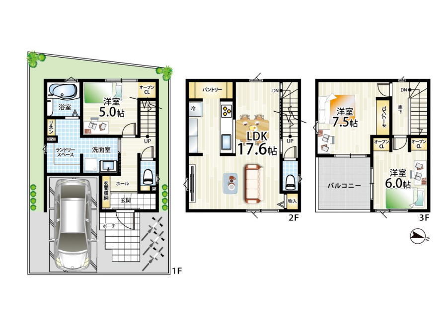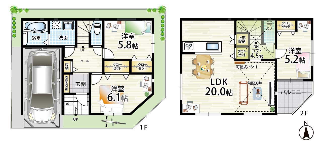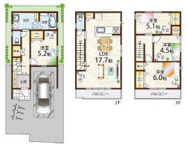 ![]() 【パース図】 ![]() 【間取り】 画像の上でクリックすると拡大されます |