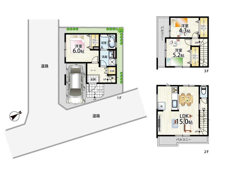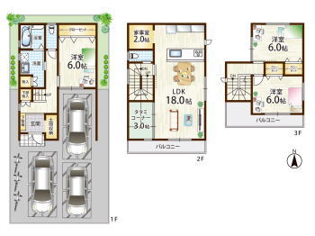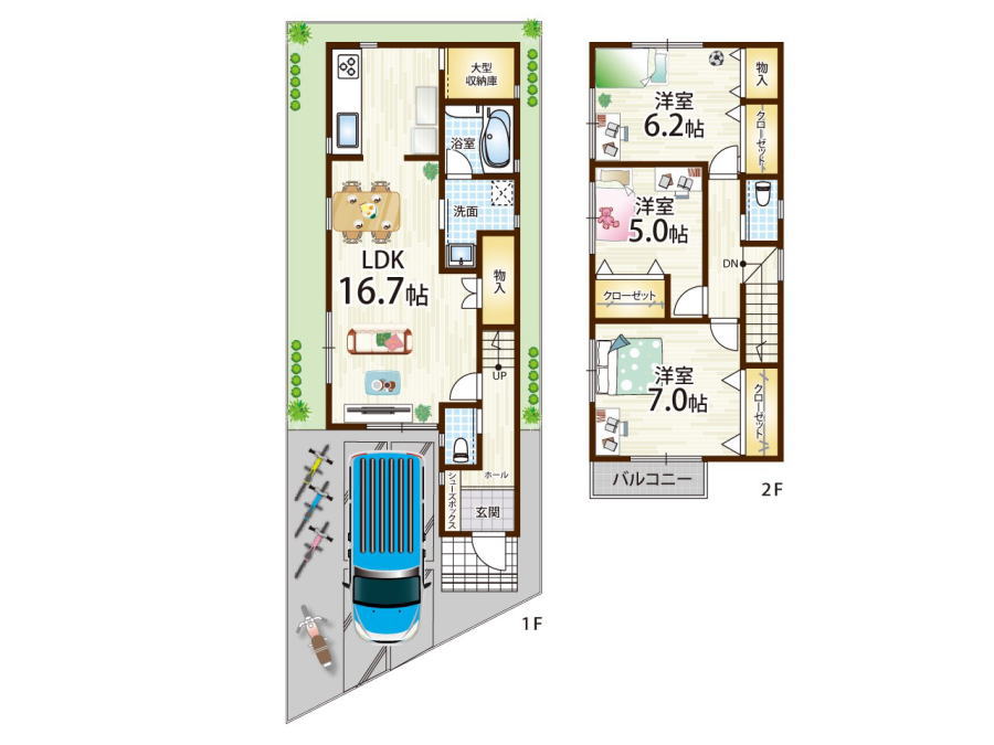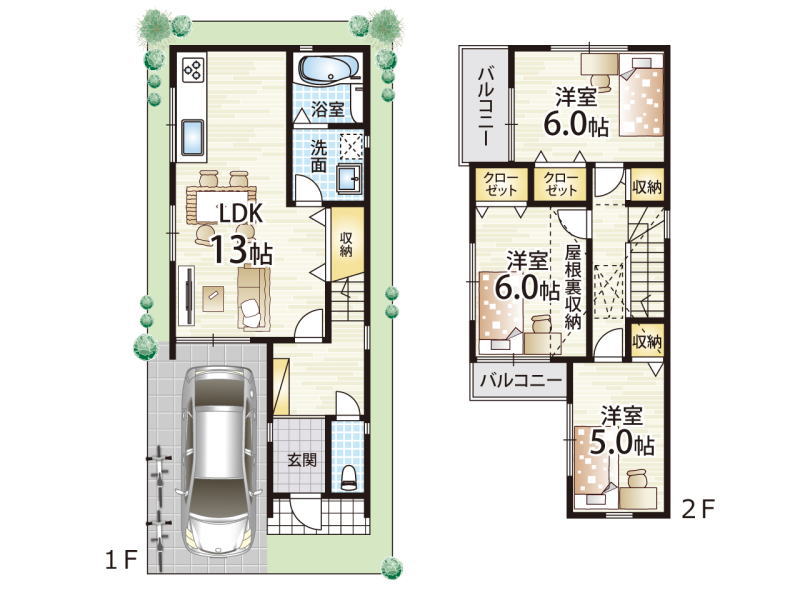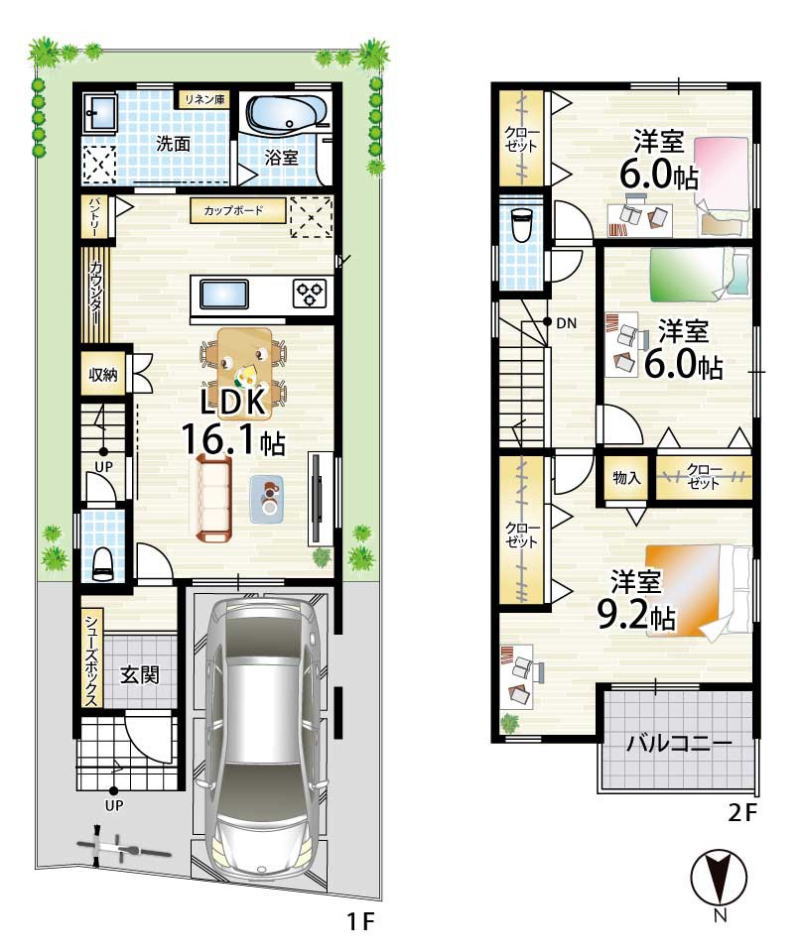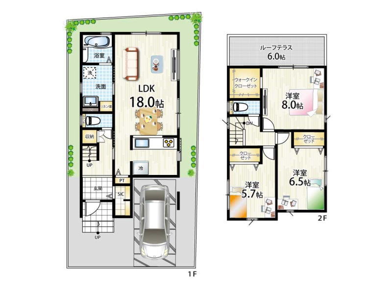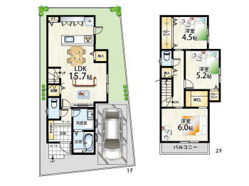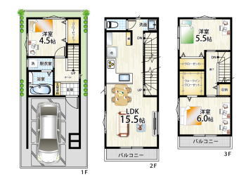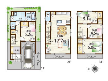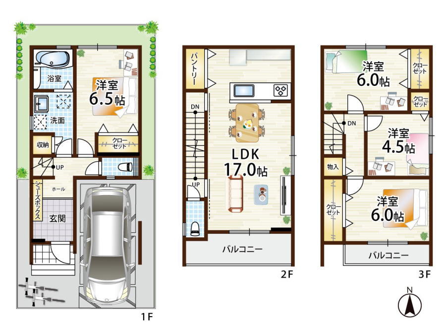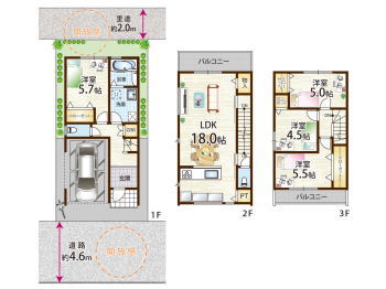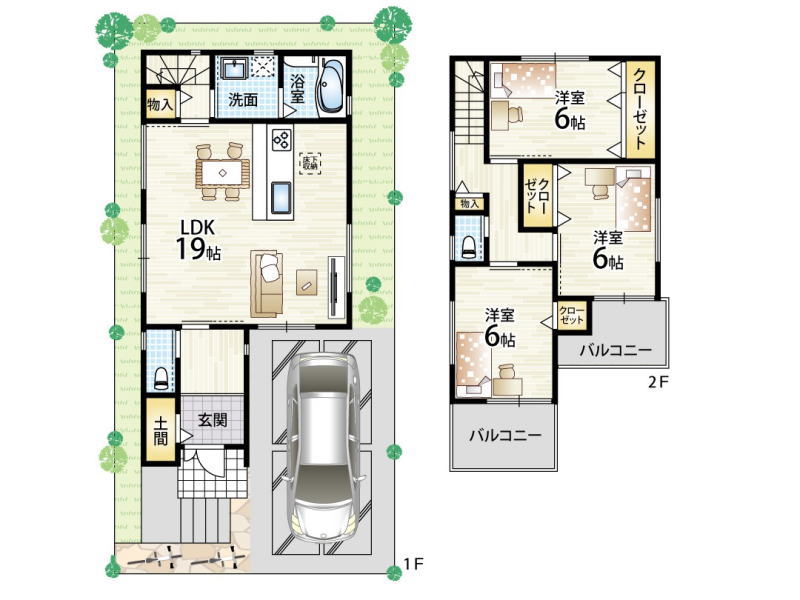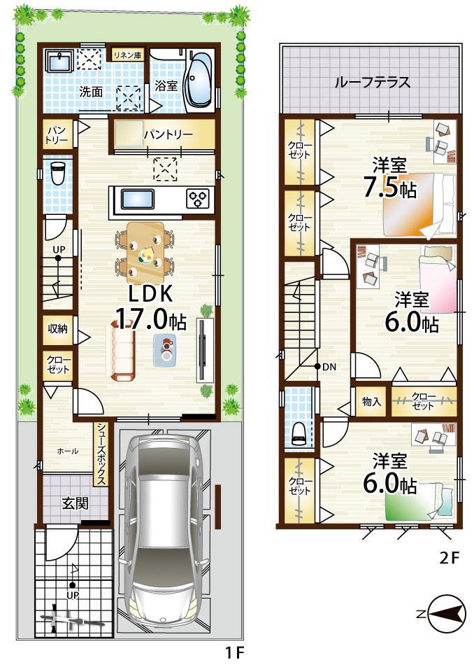![]() 【パース図】 ![]() 【間取り】 画像の上でクリックすると拡大されます |