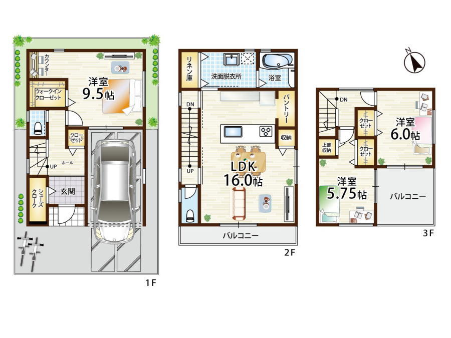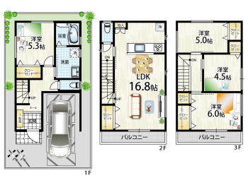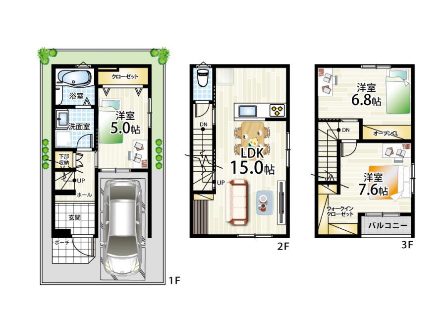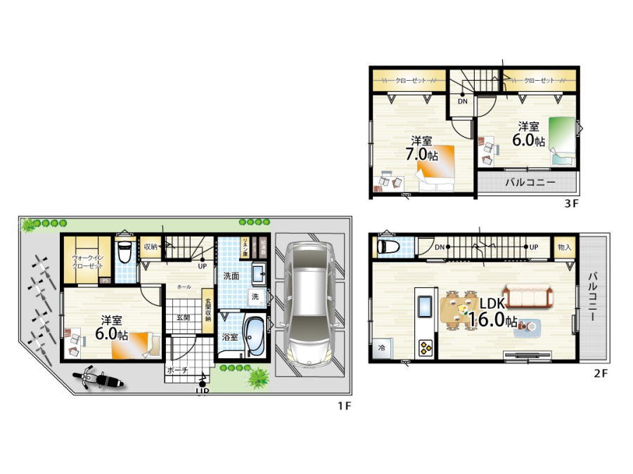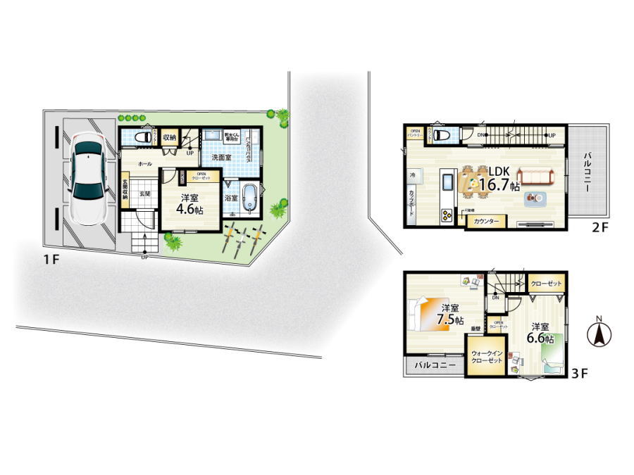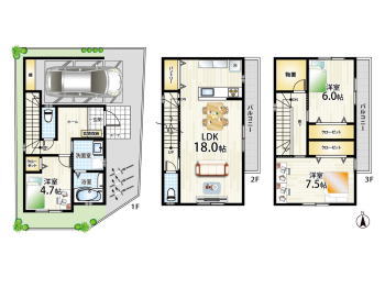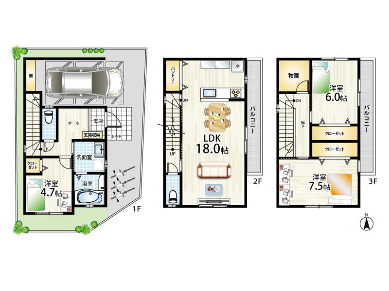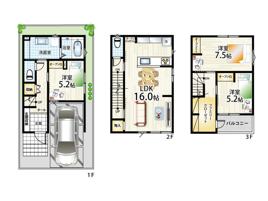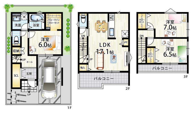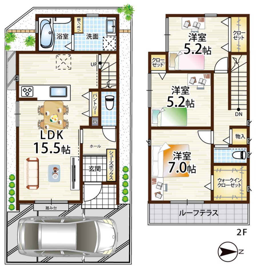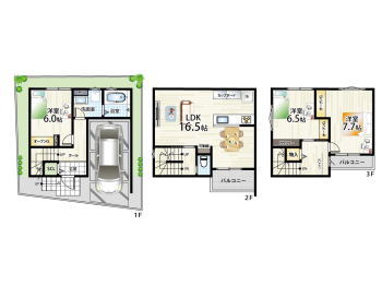 ![]() 【パース図】 ![]() 【間取り】 画像の上でクリックすると拡大されます |