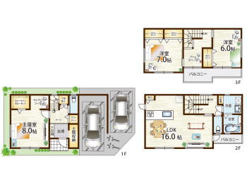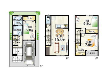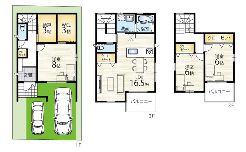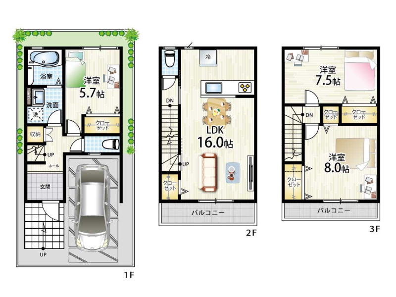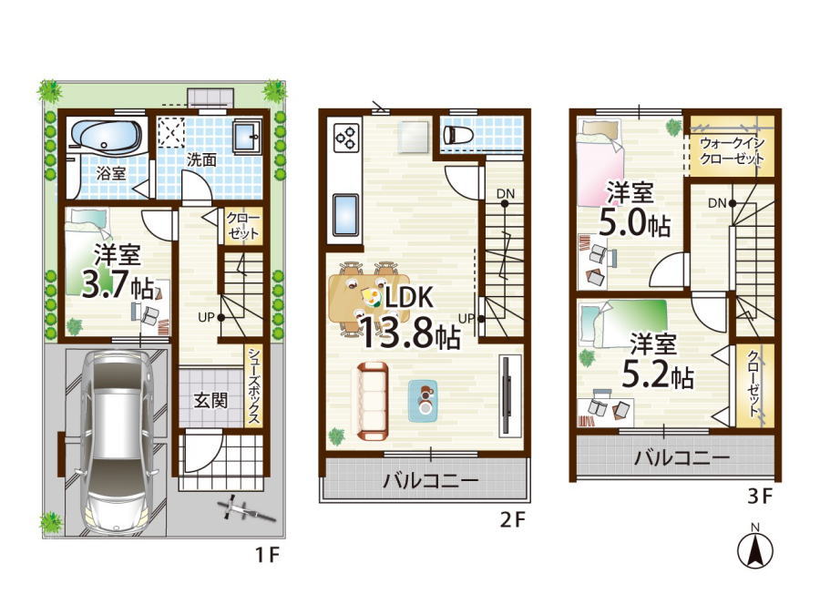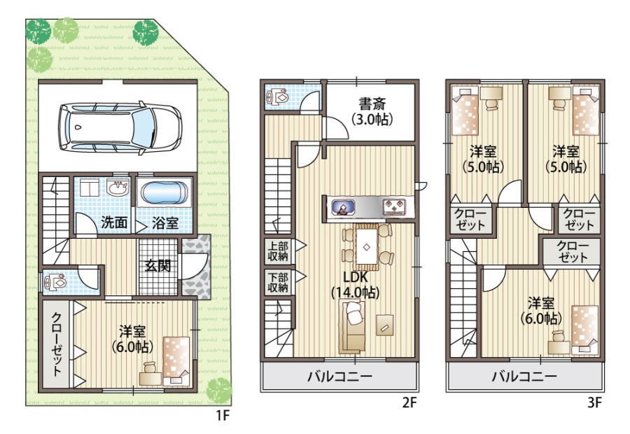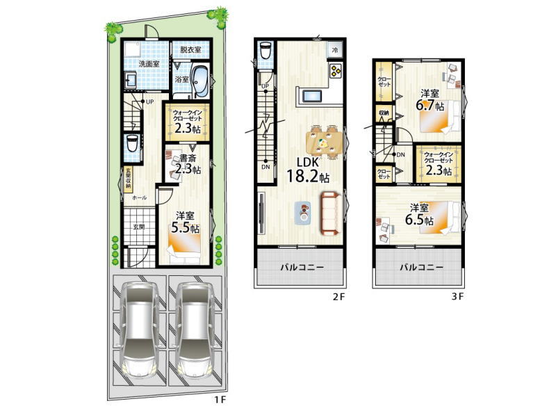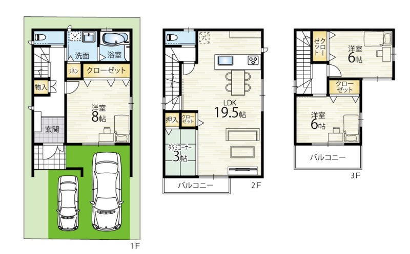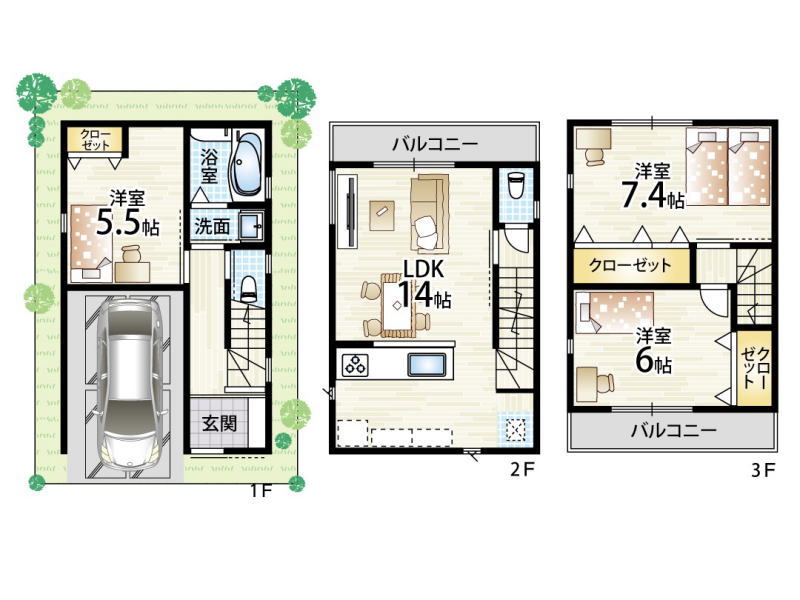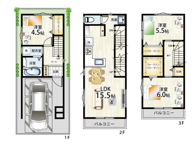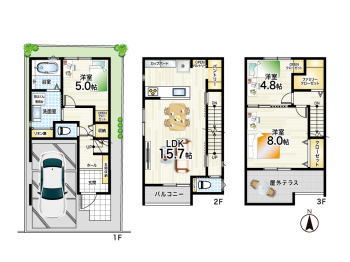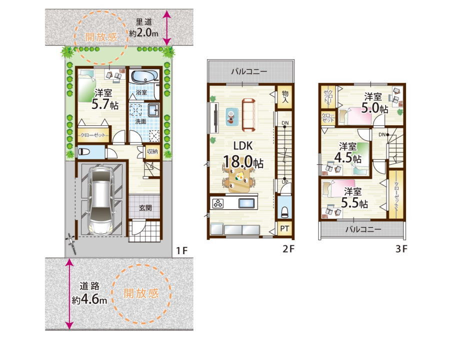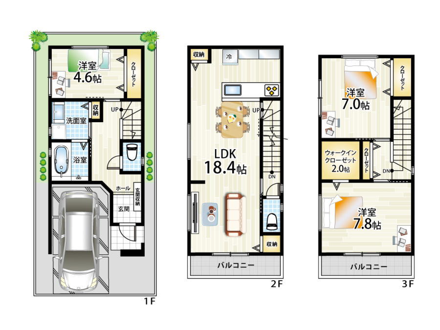 ![]() 【パース図】 ![]() 【間取り】 画像の上でクリックすると拡大されます |