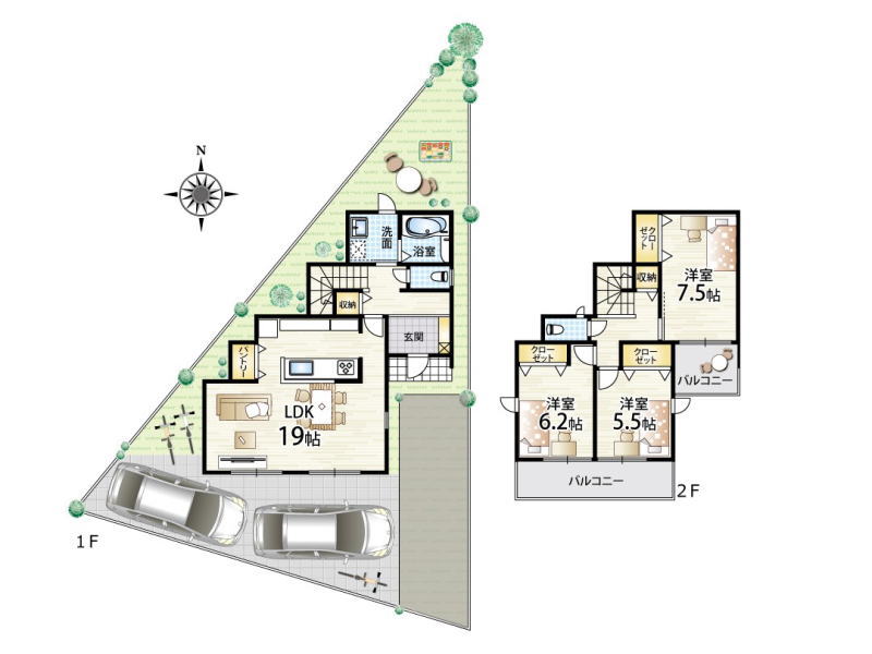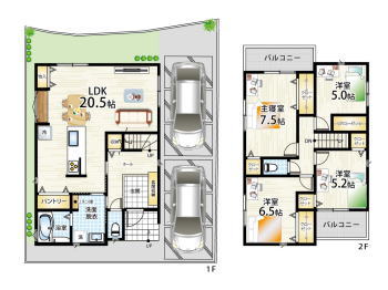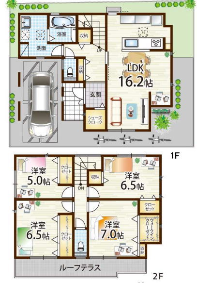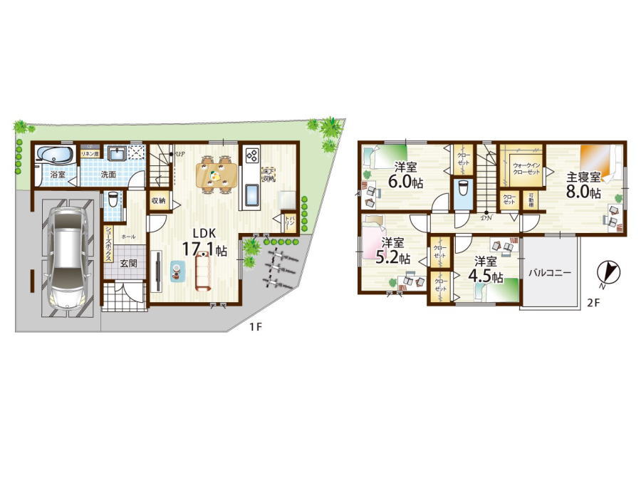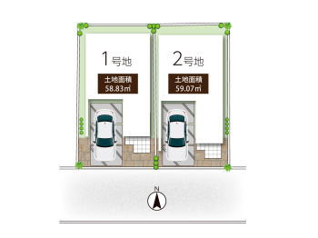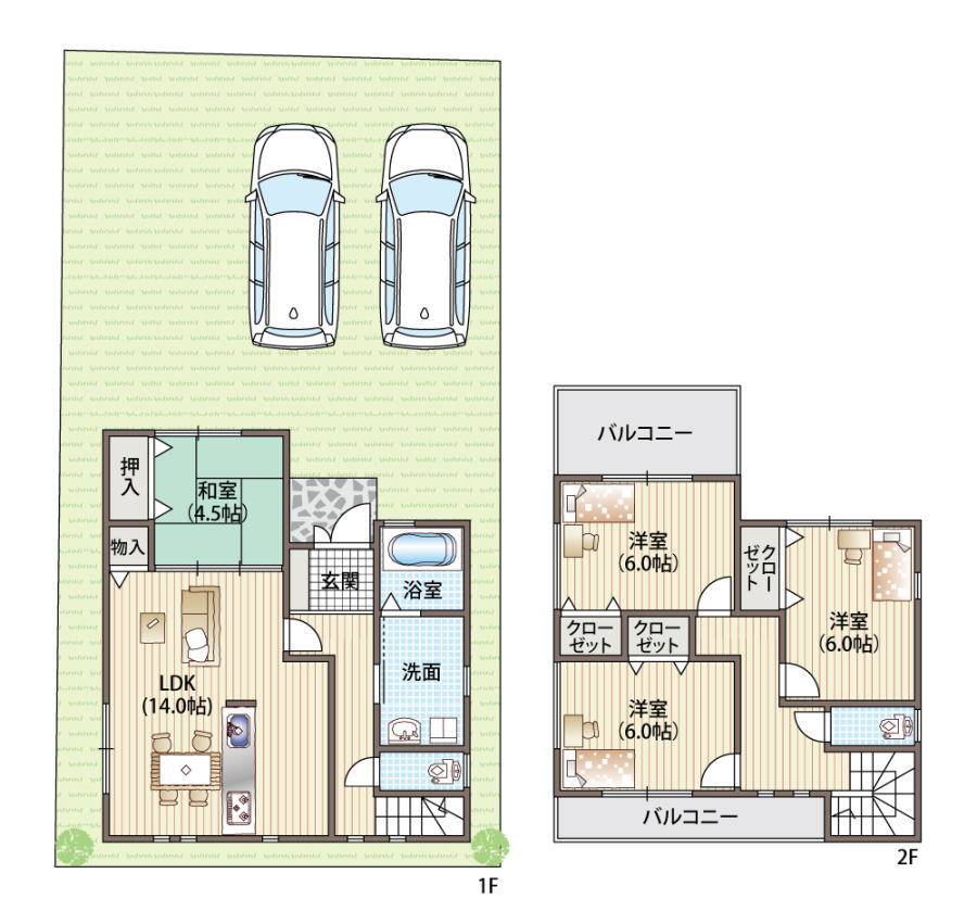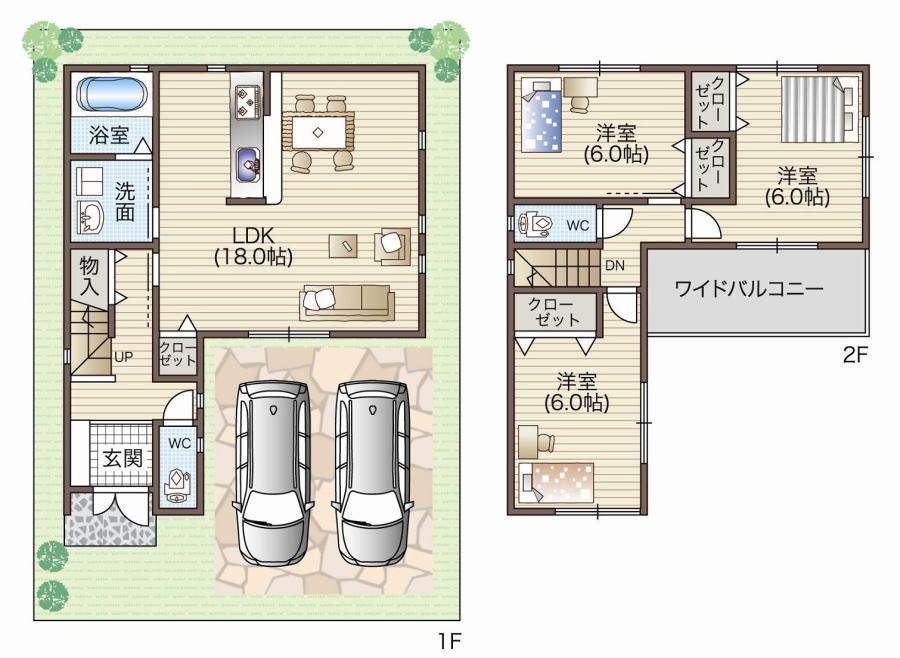【1号地間取り】 画像の上でクリックすると拡大されます ![]() 【2号地パース図】